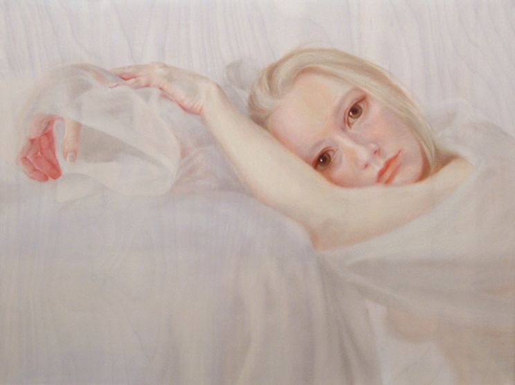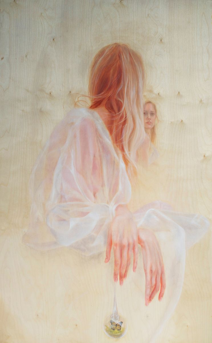 Classically trained at the New York Academy of Art, Anatole shows off techniques reminiscent of the old masters to startlingly modern effect, much as Balthus and Lucien Freud did in 20th century painting. She uses oil on wood panel as her preferred medium, believing that working on “live” material brings a sense of life to her work.