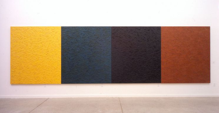 James Hayward’s canvases of the 1970s were flat, single-hued panels of black, dark green, or gray. In 1977, he was invited to participate in the famous “Less is More” exhibition at New York’s Sidney Janis Gallery, which brought him national recognition. While in New York, he was introduced to Robert Ryman, Brice Marden and Sean Scully, who were influential in Hayward receiving a fellowship to Japan in 1982. There, he became keenly interested in the calligraphic mark. He began to paint in a more expressionistic and spontaneous way, experimenting with thick paint and wax, while also adding deep, rich, vibrant primary colors to his palette. On returning to the U.S, Hayward began creating paint-rich, deeply impasto surfaces that have characterized most of his work in recent years.