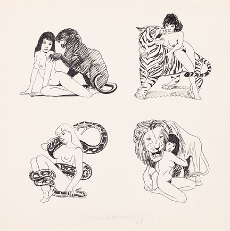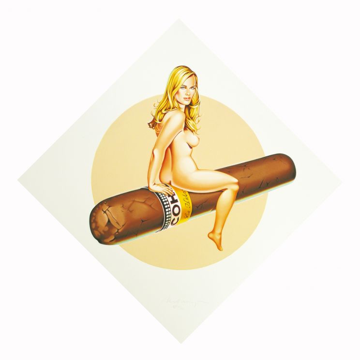 Mel Ramos [1935-2018] was an American Pop artist best known for his paintings of female nudes alongside brand logos. His depictions of women with everyday products celebrate aspects of popular culture represented in mass media and advertising. Like his contemporaries Roy Lichtenstein and Andy Warhol, Ramos was inspired by comic books and grew up drawing cartoons and characters from their pages. The artist's works, including paintings, prints and works on paper, feature in the permanent collections of the Whitney Museum of American Art in New York, the San Francisco Museum of Modern Art and the Museum of Contemporary Art in Los Angeles, among others.