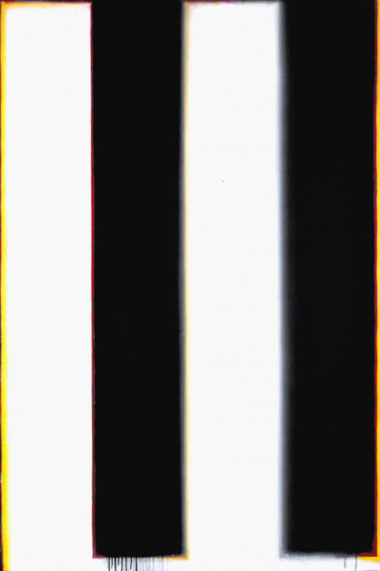 During the 1960’s and 1970’s, Peter Lodato's art consisted of environmental works utilizing space, powerful lights, mirrors, shadows and reflections. Soon after, Lodato realized he could make a similar statement by replacing the reflected light and shadow images with paint applied directly to the walls in large flat and glossy panels of color and black and white. These works were exhibited at the Los Angeles County Museum of Art (1972), PS1 in New York City (1978), the Whitney Biennial (1981), and the La Jolla Museum of Contemporary Art (1985). More recently, Lodato’s work has consisted of abstract paintings and works on paper that have the same perceptual quality as his early light and space installations. Lodato’s simple compositions are concerned with positive and negative space, and the pitting of shapes against edges and margins. Peter Lodato [b. 1946] lives and works in Los Angeles.