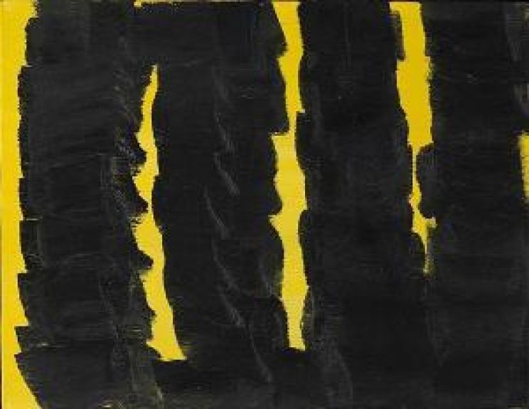 "For many years Tchakalian has made abstract paintings consisting of broad horizontal bands applied in expansive, undemonstrative, gestures," wrote Kenneth Baker in an exhibition review in 1991. "But Tchakalian is much more a materialist than are color field painters like Helen Frankenthaler or Olitski (in the 60s), who use light and atmosphere as an abstract code for transcendent intangibles. He is interested in detailing how the possibilities of painting as an art always have been embedded in its physical matter. When he drags colors together (or mingles them with white) to make light seem to sheet through a brush stroke from behind, the effect interests him less than its tension with the inert that makes it possible. Part of the art of Tchakalian's work is in leaving every canvas looking as fresh as if he had finished it at one go."