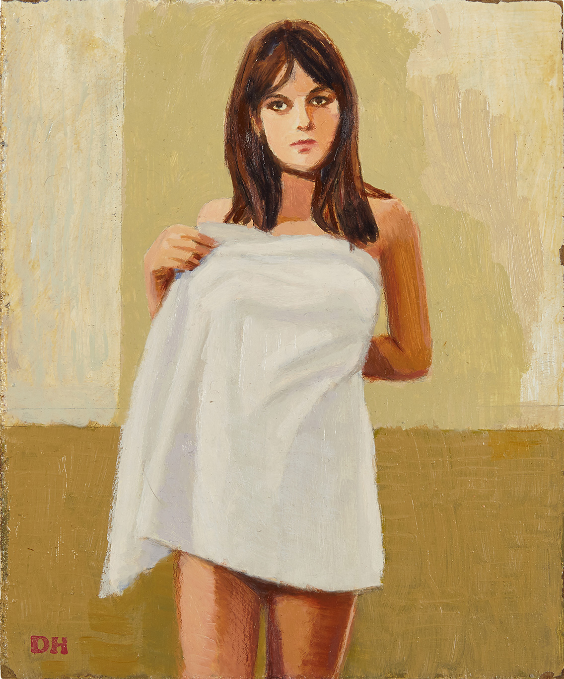 "I retreated to my Cornwall, Connecticut studio on March 13th.There was none of the distraction I usually deal with in my Brooklyn life, so I was able to build a momentum like never before and indulge myself in my filmic fantasies on small canvases. I began to put my movie star crushes on the covers of magazines that I collect. I was inspired not only by foreign cinema, but by 60s English Pop artists Peter Blake and Pauline Boty, who I’d long admired.” —Duncan Hannah, 2020