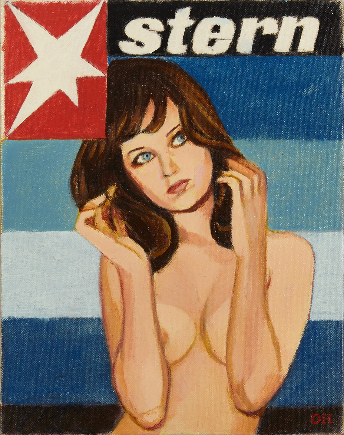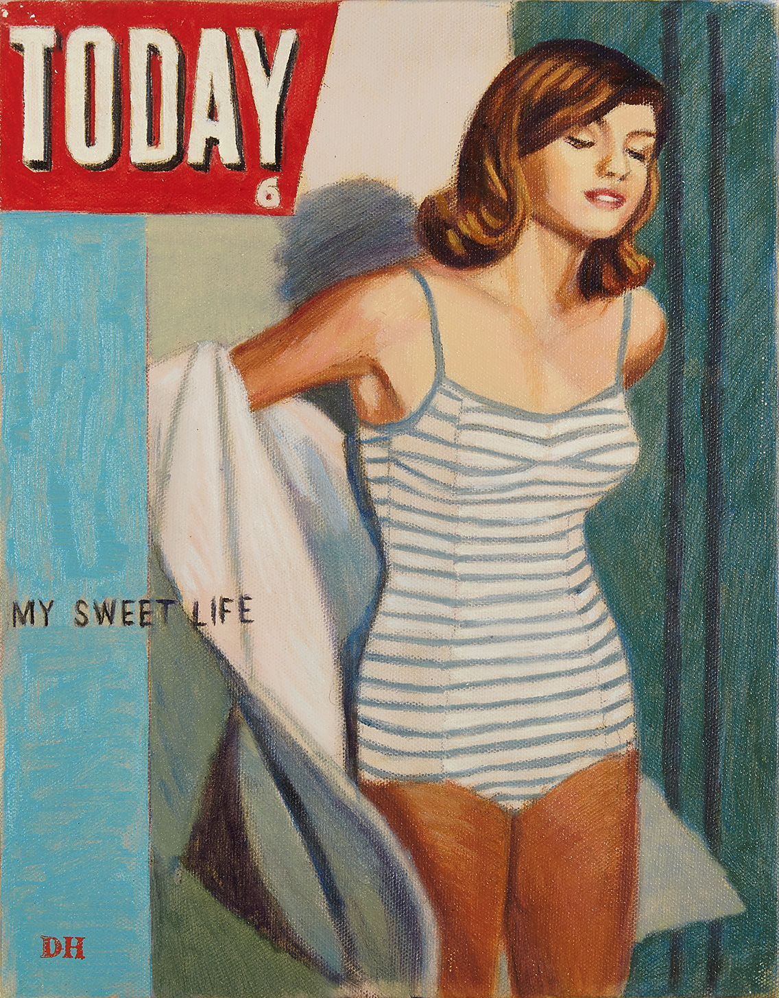 In addition to his narrative scenes, Hannah has produced a new series of paintings over the past year in which he has reinvented the covers of French and Italian fan magazines with his favored movie starlets from the 1950s and 60s such as Catherine Spaak, Dominique Sanda and Femi Benussi.
