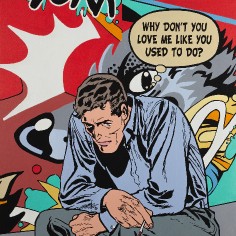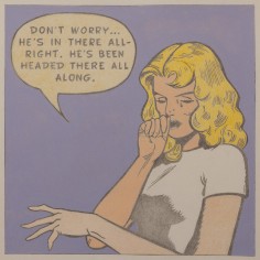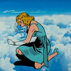 The artist explains “The use of the 1950’s cartoons reflect my desire to locate personal / psychological dialogues that read as implications of long-term societal shifts away from the values of an earlier moment in America’s cultural history. The quieting of the compositions along with the pastel colors suggest memories of things gone by. The image becomes a dream-like echo of personal and societal loss."