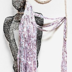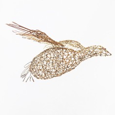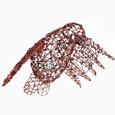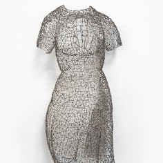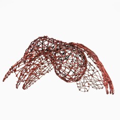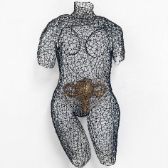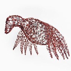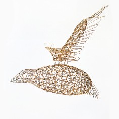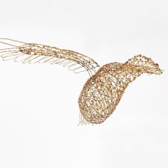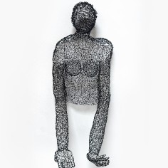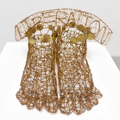 Employing a unique sculptural method, Mays bends and hooks rebar tie wire together with pliers, one piece at a time. Each piece requires at least sixty hours of labor, during which she gives form to a human body or garment without reliance on a mold or model. Especially remarkable are the gestural qualities that make the works appear both animate and soulful. “I am breathing life into wire,” she says. “With each work, I create a form that reveals the essence of a person and that speaks to humanity as a whole.” Quotations accompanying her sculptures often provide important context for full appreciation of their content.