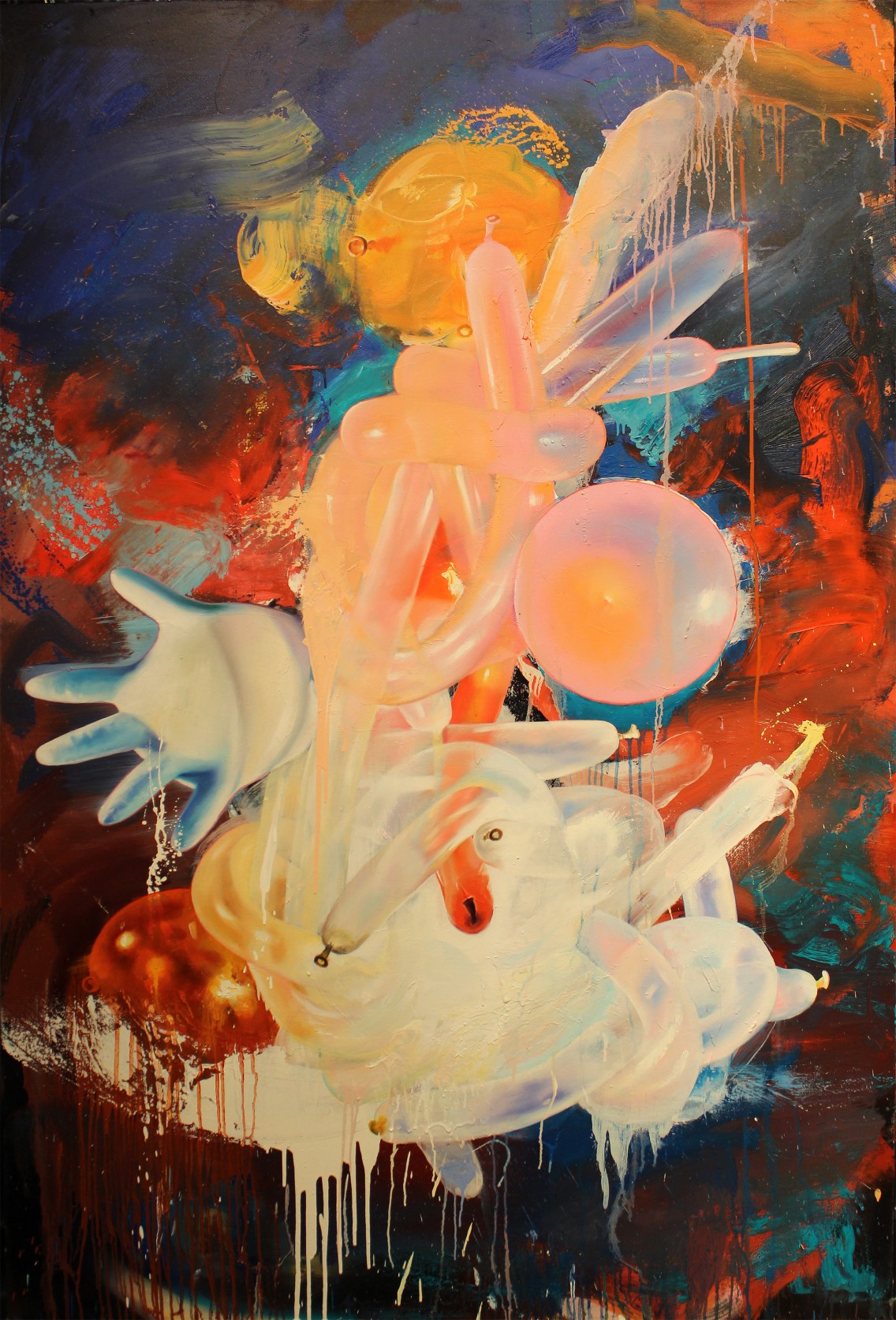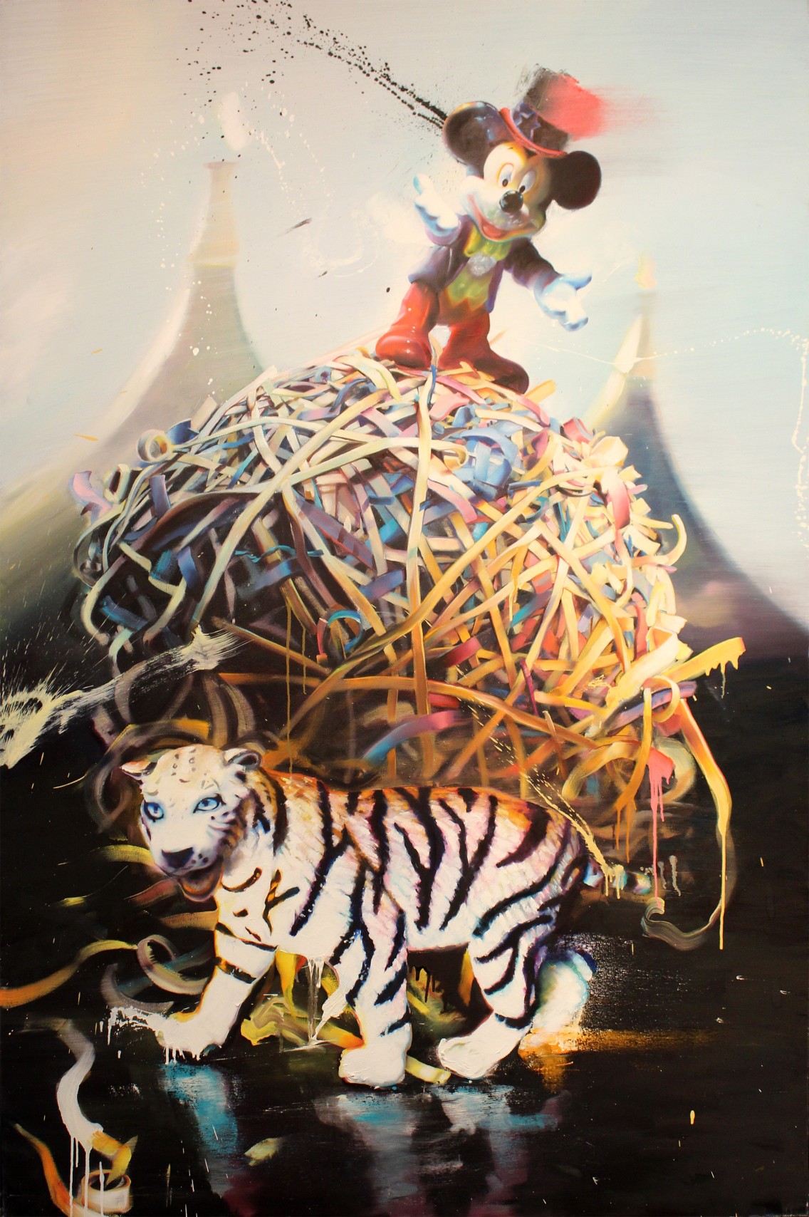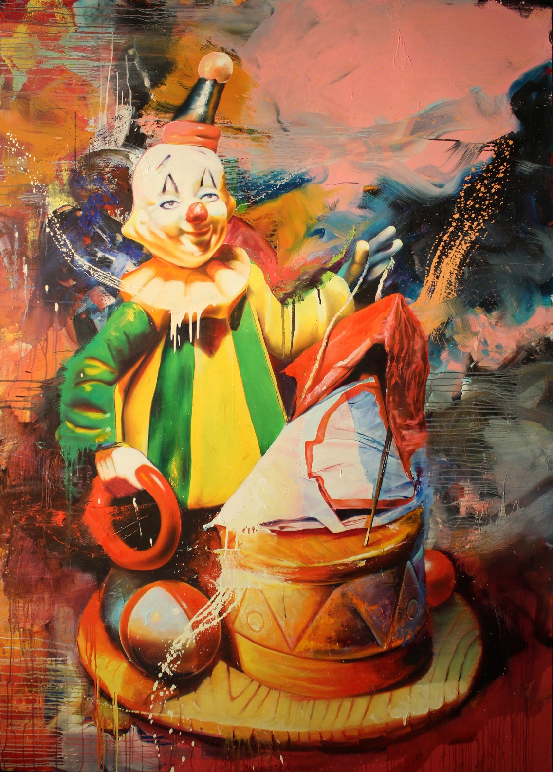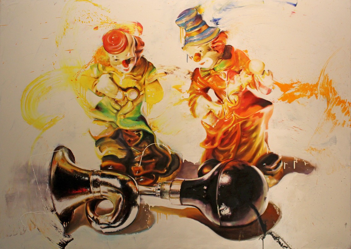 My most vivid memories from childhood have always been circus inspired—screaming with both color and sound; the spotlight against an ink black background. I will always try to recapture the feeling of sitting in the dark watching a death defying feat realizing that I'd been holding my breath the whole time, mesmerized by the sheer spectacle. I was always amazed that my parents would take me to such an epic event—feeling like I had actually gotten away with something by merely watching the clowns playing out many antics. The animal acts held a special place in my love of the circus, Pachyderm is a word I would learn and refer to often. The balloon man, always considered a questionable character, had a huge influence. On record is the fact that "balloon" was the first word I ever spoke.