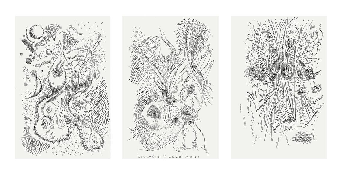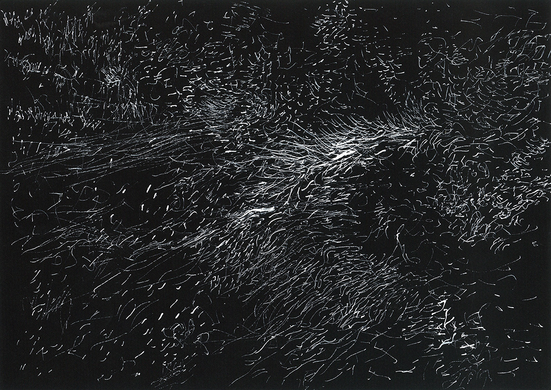 After a long hiatus from drawing—during which she focused on painting and video and stage design—Kremer has returned to charcoal, as well as graphite and pen and ink. Drawings old and new are the subject of her 17th exhibition at Modernism Gallery, opening on March 9. The show encompasses her monumental untitled charcoals, seven from 2006-7 and one more that Kremer created expressly for this exhibition, three smaller-scale Feather River series drawings from 2006, and, among other works, a selection of elegantly minimal crow quill drawings of flora that she composed earlier this year in response to the landscape she encountered in the South Pacific.
