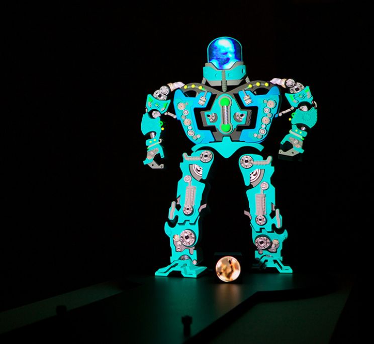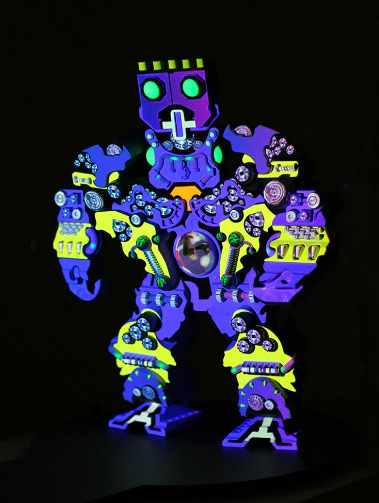 sintered 3D print, powder coated steel and aluminum, video projection, audio14 x 14 x 40 inches