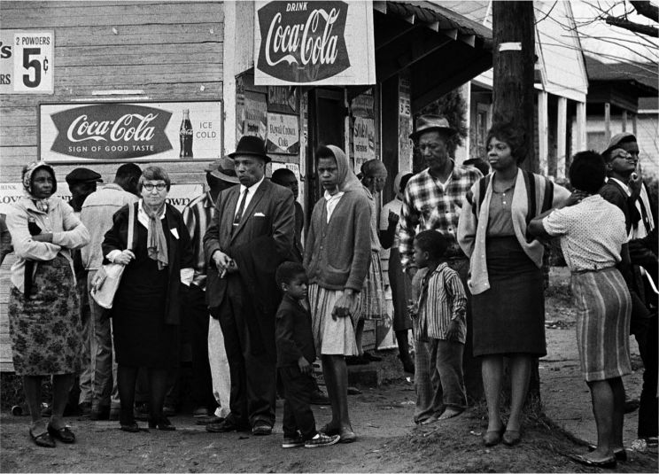 Black women and children watching civil rights marchers