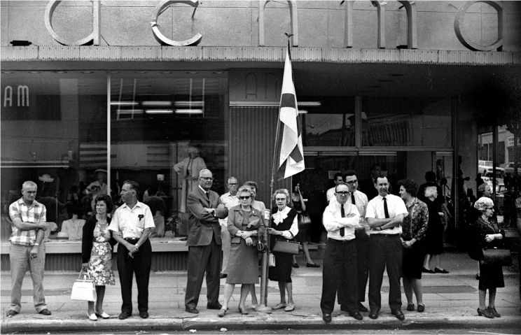 Whites watching the marchers as they pass through downtown