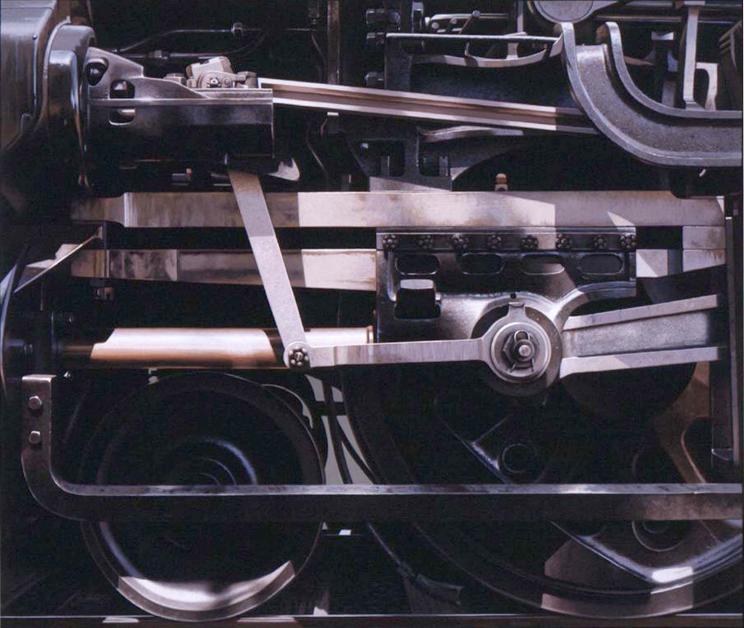 In addition to his urban subjects, Heinze has also painted dilapidated farm equipment such as tractors and water pumps, and old trains and locomotive engines; in Exactitude: Hyperrealist Art Today, John Russell Taylor writes that "Heinze is fascinated by decaying machinery left behind as the detritus of the Industrial Revolution. The forms are powerful, if inscrutable."[4] He has also done series of paintings depicting rocky cliffsides, vineyard grapes, and streams; much of his subject matter is characterized by complex reflections off glass or water, intricate foliage, and deep background blacks with saturated colors in the foreground.