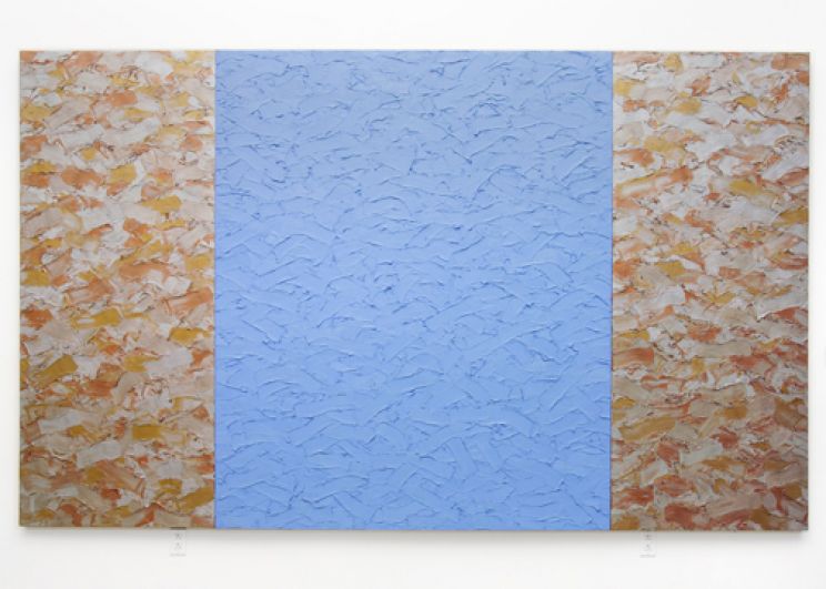 James Hayward’s canvases of the 1970s were flat, single-hued panels of black, dark green, or gray. In 1977, he was invited to participate in the famous “Less is More” exhibition at New York’s Sidney Janis Gallery, which brought him national recognition. While in New York, he was introduced to Robert Ryman, Brice Marden and Sean Scully, who were influential in Hayward receiving a fellowship to Japan in 1982. There, he became keenly interested in the calligraphic mark. He began to paint in a more expressionistic and spontaneous way, experimenting with thick paint and wax, while also adding deep, rich, vibrant primary colors to his palette. On returning to the U.S, Hayward began creating paint-rich, deeply impasto surfaces that have characterized most of his work in recent years.