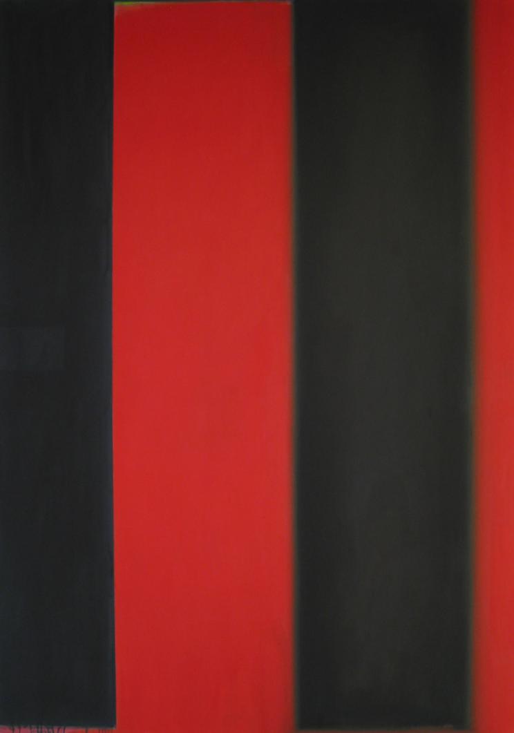 During the 1960’s and 1970’s, Peter Lodato's art consisted of environmental works utilizing space, powerful lights, mirrors, shadows and reflections. Soon after, Lodato realized he could make a similar statement by replacing the reflected light and shadow images with paint applied directly to the walls in large flat and glossy panels of color and black and white. These works were exhibited at the Los Angeles County Museum of Art (1972), PS1 in New York City (1978), the Whitney Biennial (1981), and the La Jolla Museum of Contemporary Art (1985). More recently, Lodato’s work has consisted of abstract paintings and works on paper that have the same perceptual quality as his early light and space installations. Lodato’s simple compositions are concerned with positive and negative space, and the pitting of shapes against edges and margins. Peter Lodato [b. 1946] lives and works in Los Angeles.
