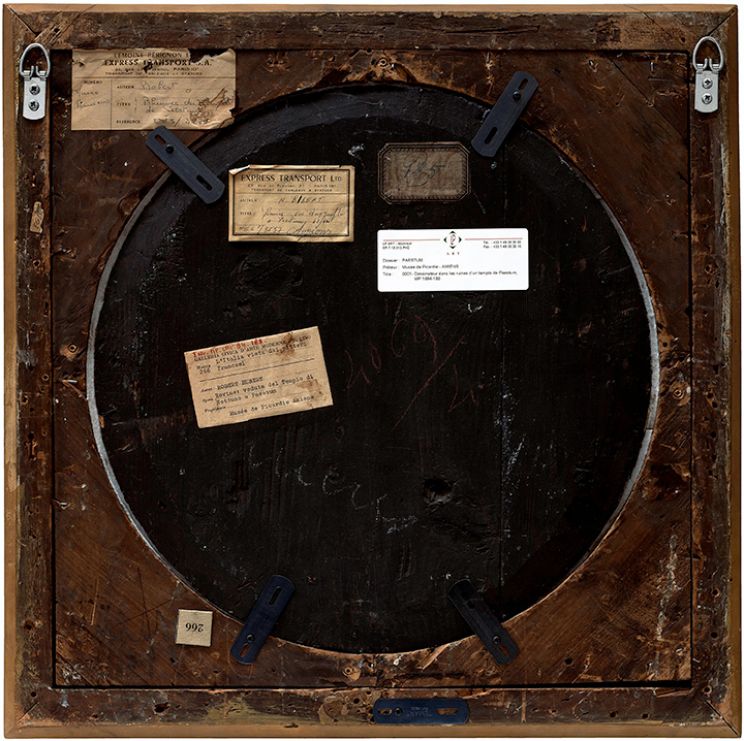 Verso n.33, Dessinateur dans les ruines d'un temple a Paestrum, par Robert Hubert, collection du musee des Beaux-arts d'Amiens