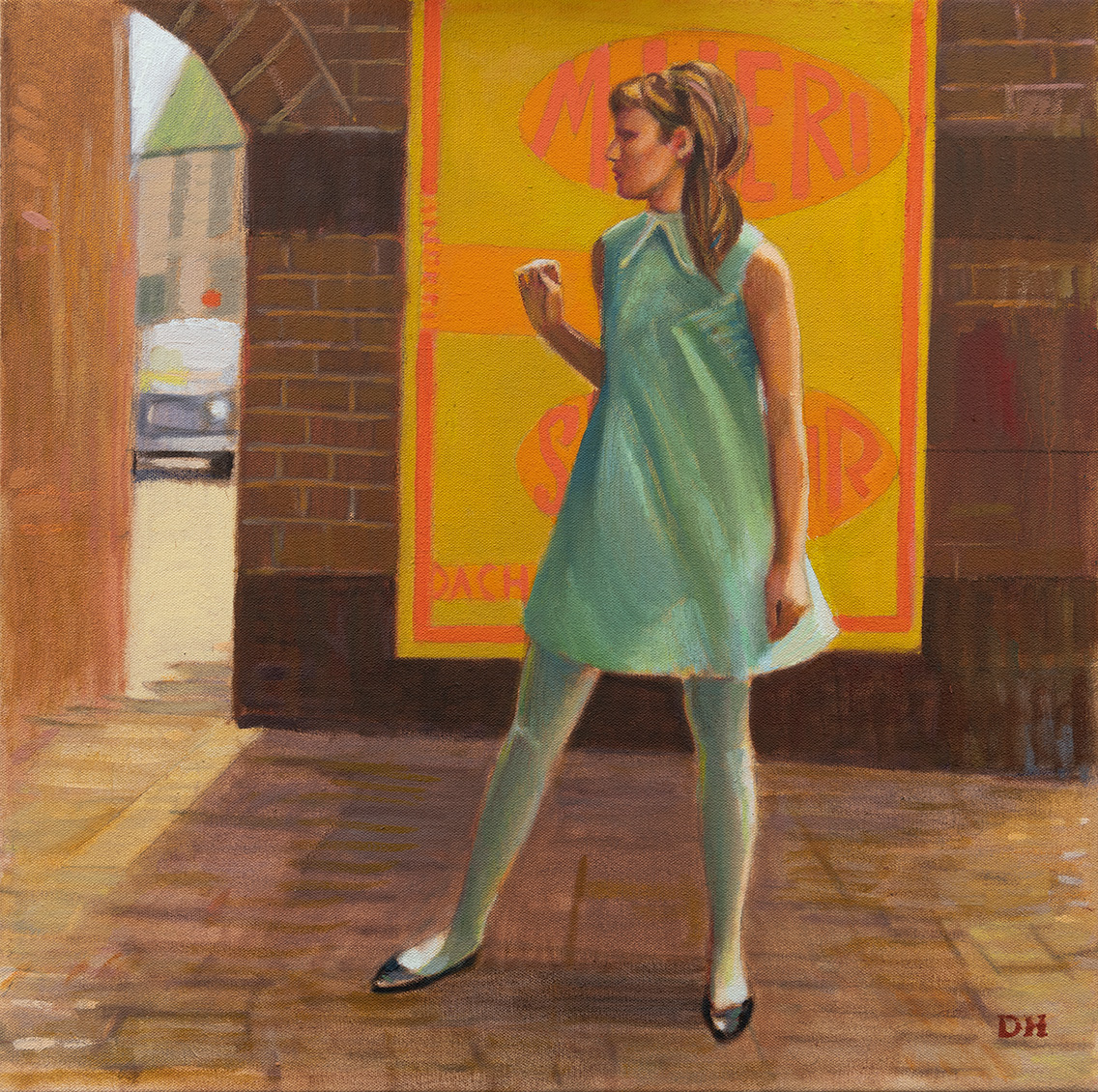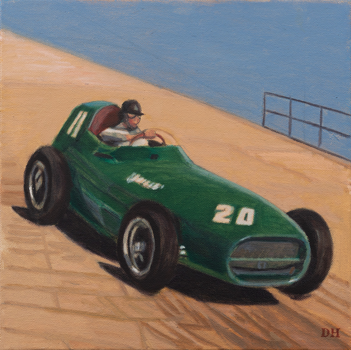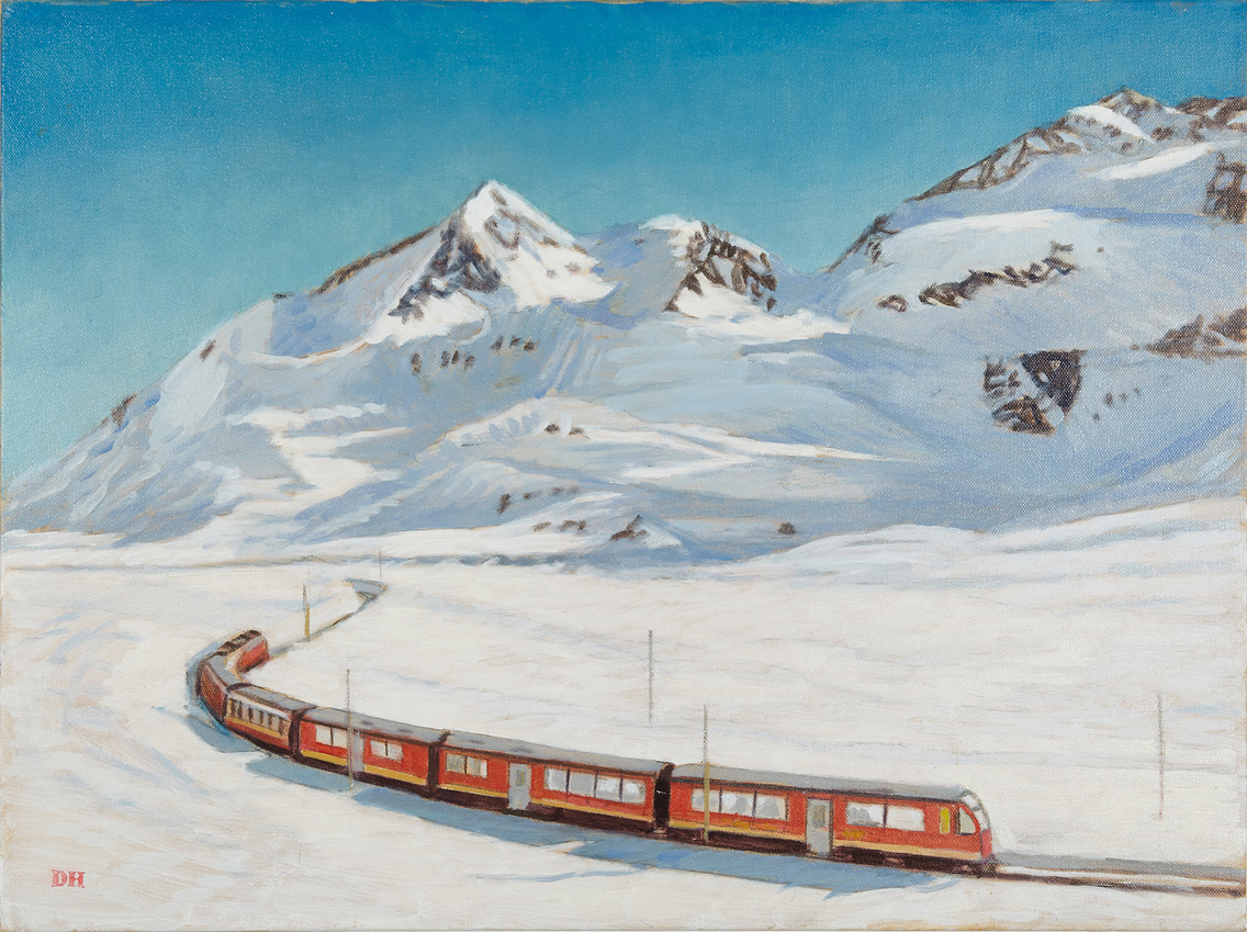 Duncan Hannah creates a world evocative of an earlier era, with quiet theatricality and unspoken narratives. With Europe often the setting for his atmospheric scenes, the artist reinvents a period in which fashionable figures wander the streets of London and Paris, a classic car races in the Monaco Grand Prix, and a train makes it way through the snow-laden Alps.