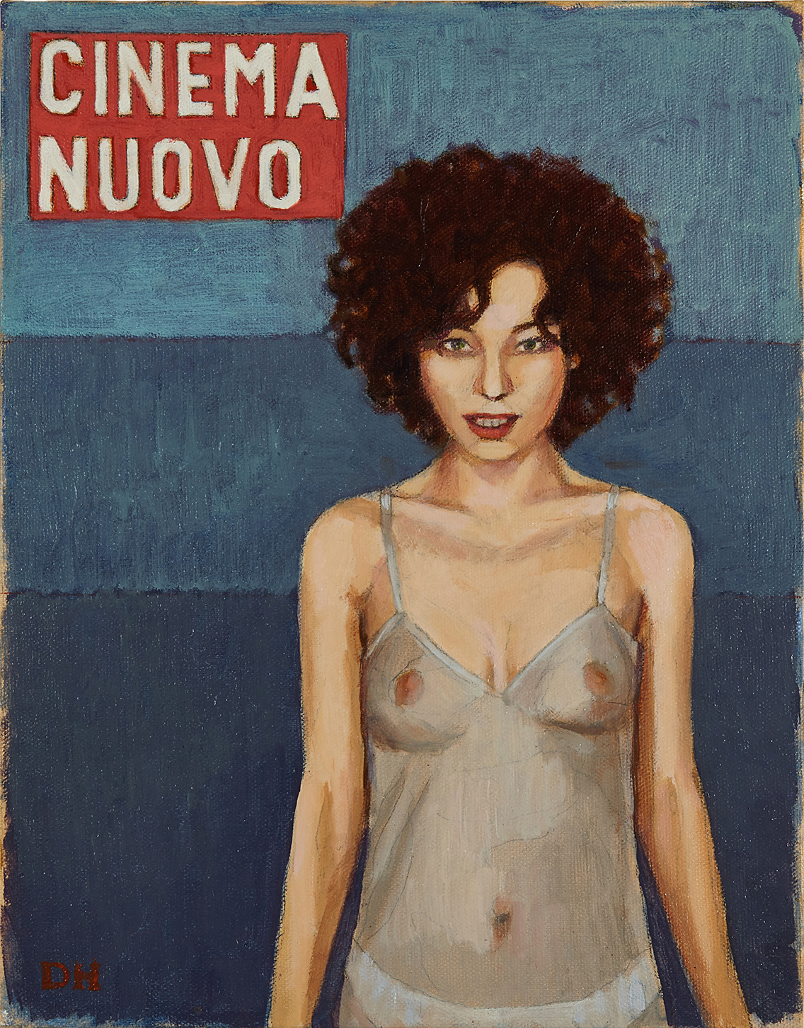In addition to his narrative scenes, Hannah has produced a new series of paintings over the past year in which he has reinvented the covers of French and Italian fan magazines with his favored movie starlets from the 1950s and 60s such as Catherine Spaak, Dominique Sanda and Femi Benussi.