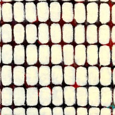 Kim uses various mediums- paint, drawing and knitting- to recall memories into the present. In works such as Stockinette, she knits compositions that stand beguilingly between two and three dimensions. Even before she mastered the alphabet, Kim learned knitting from her maternal relatives. “I remember the common bond, and the meditative feeling that came from the repetitive motion of connecting loops,” she says. “The linear process is the same for knitting and painting, both of which create complexity through layers of color.”