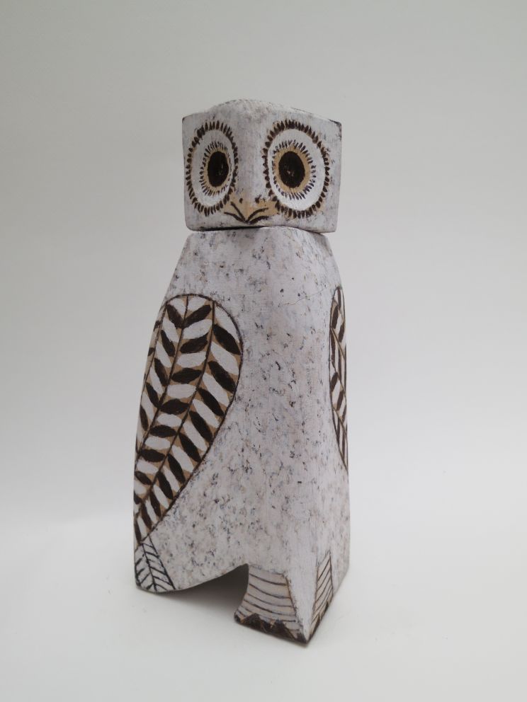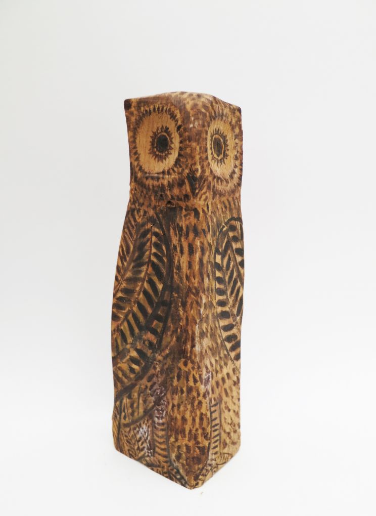 Chouette en bois ocre et noire