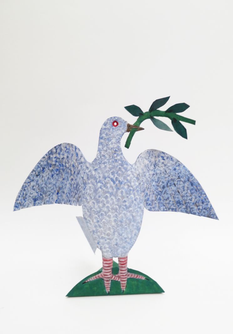 Colombe avec un rameau dans le bec