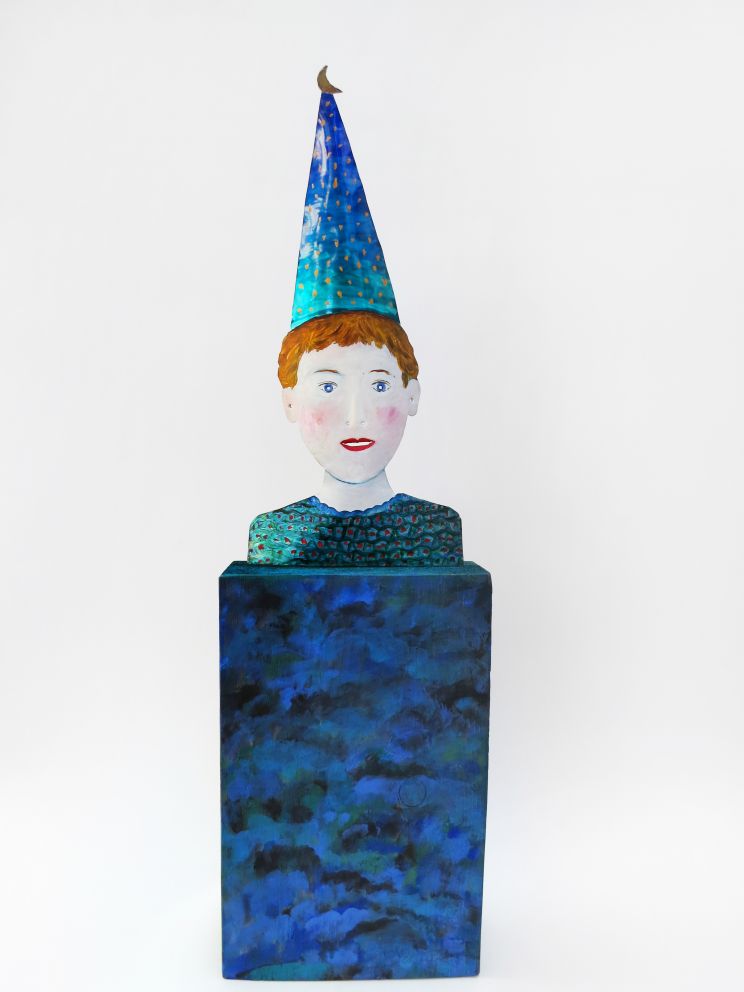Jeune clown aux yeux bleus en verre