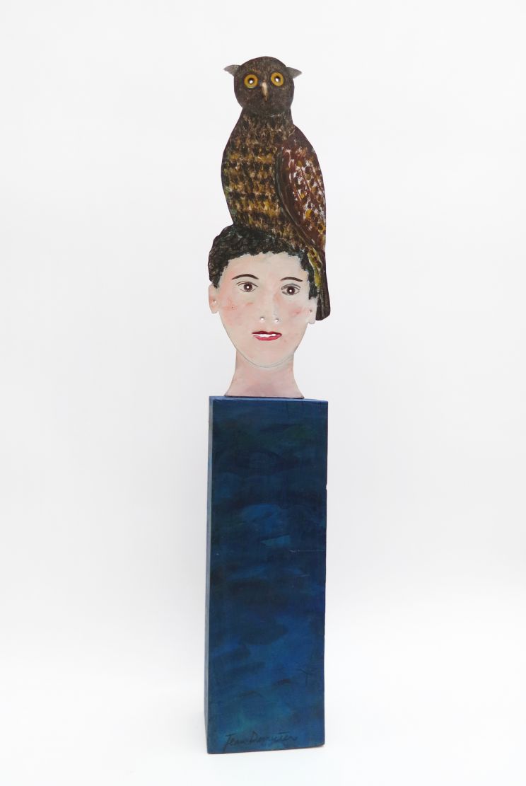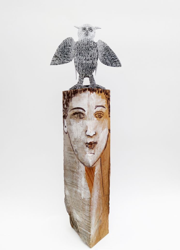 Petit totem homme avec une chouette sur la tete