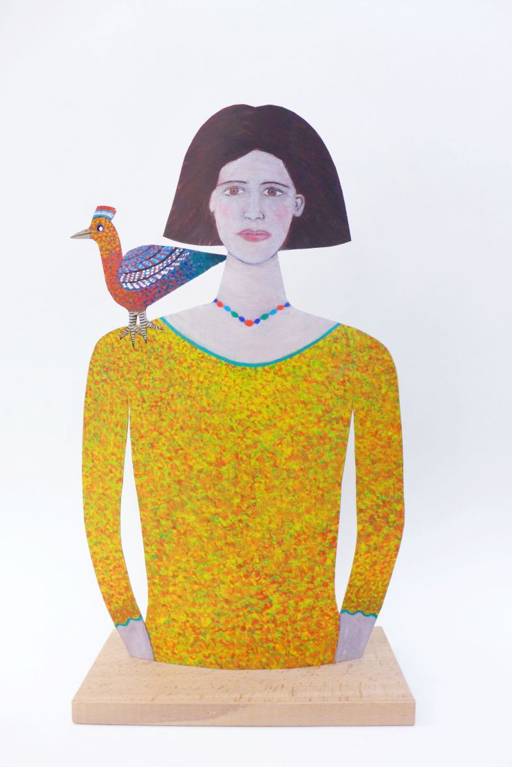Jeune femme avec un oiseau sur lepaule