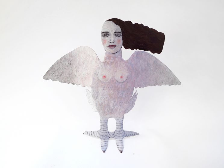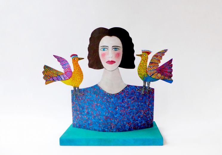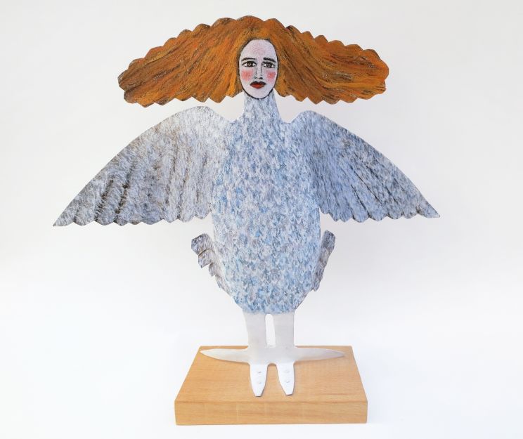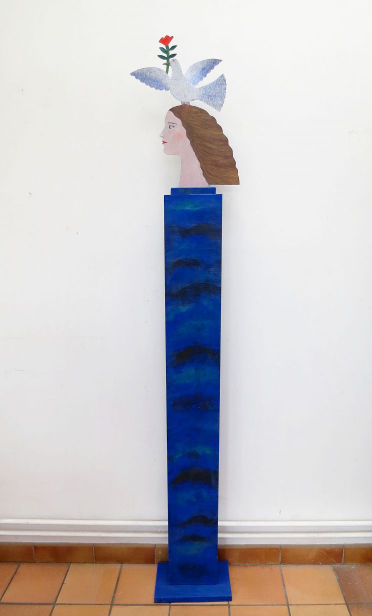 Totem Jeune fille de profil avec une colombe la fleur au bec