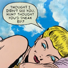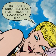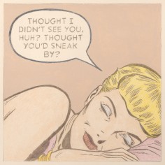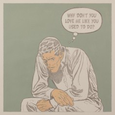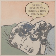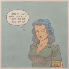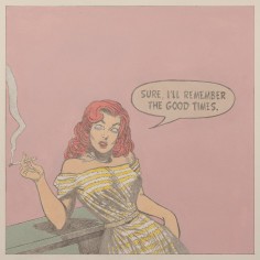 The artist explains “The use of the 1950’s cartoons reflect my desire to locate personal / psychological dialogues that read as implications of long-term societal shifts away from the values of an earlier moment in America’s cultural history. The quieting of the compositions along with the pastel colors suggest memories of things gone by. The image becomes a dream-like echo of personal and societal loss."
