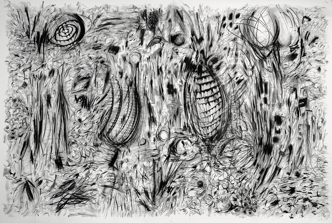 In 2007, Naomie Kremer made a series of drawings that she chose to leave untitled. Monumental in scale, and rendered in lush layers of charcoal, her lyrical abstractions were far too complex to describe, let alone to name. Even today, the drawings surprise her, though some have hung in her home for years. “I can’t figure out what led me to do what I did,” she admits. From Kremer’s perspective, that means she did something right.