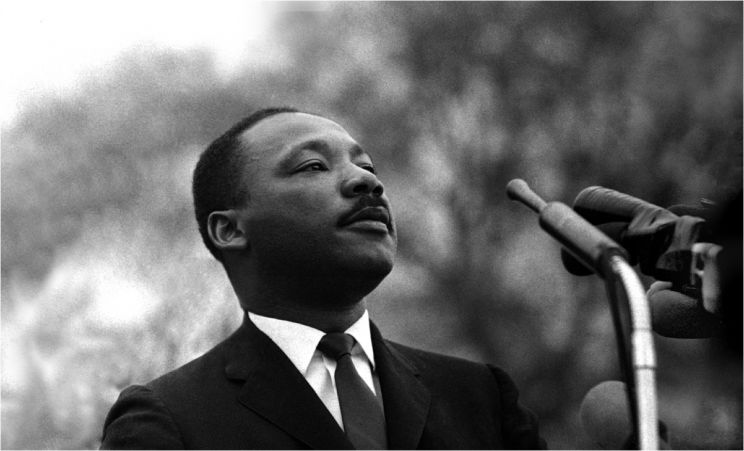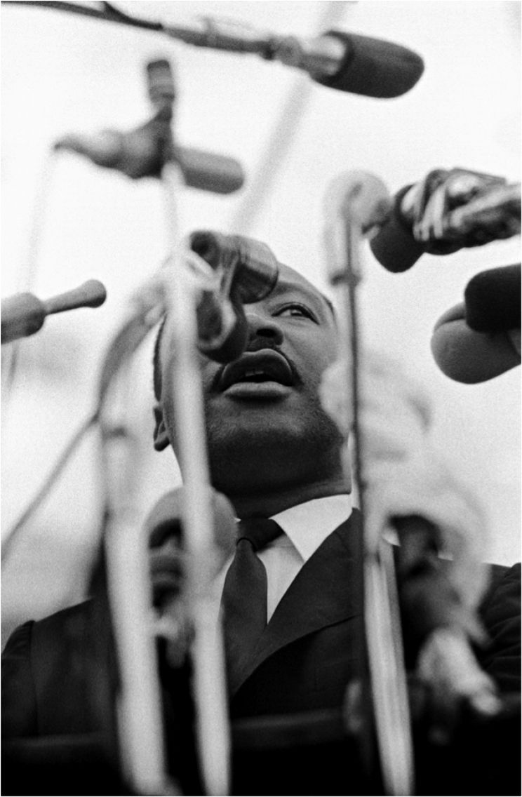 Dr. Martin Luther King, Jr., speaking before marchers