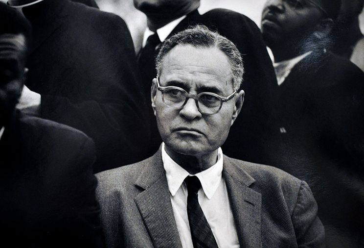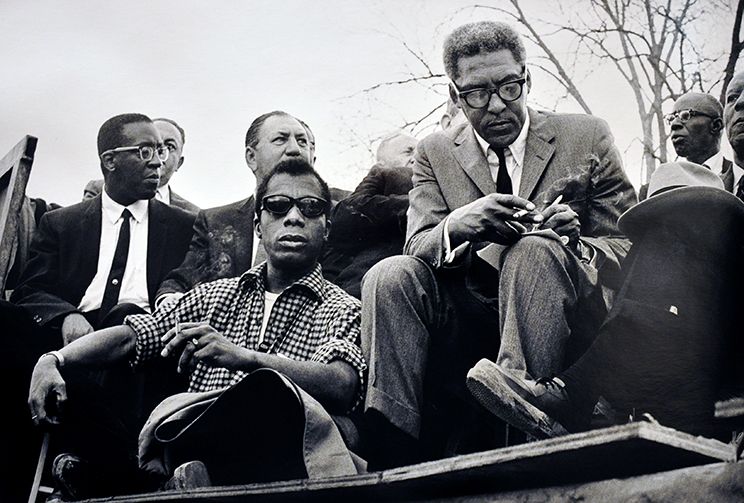 Left to right; James Baldwin, Bayard Rustin, A. Philip Randolph