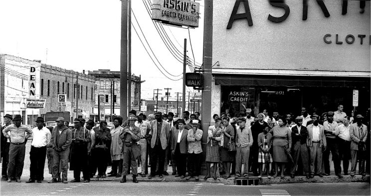 Whites watching the marchers as they pass through downtown